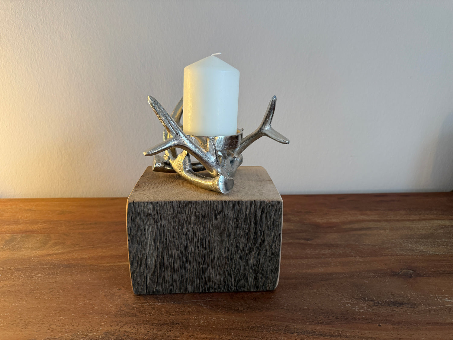 Ein Design mit Charakter – unser handgefertigter Kerzenständer für drei Stumpenkerzen vereint...
