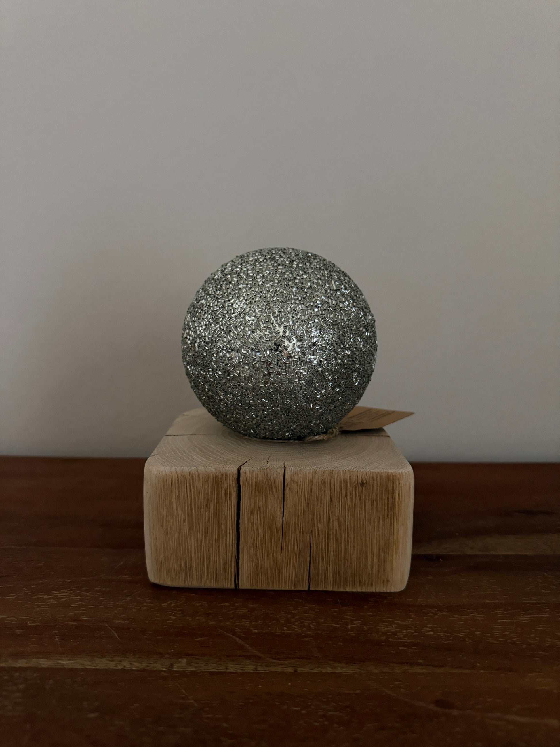 Leuchtkugel Glas auf Holzstamm geschliffen 1576