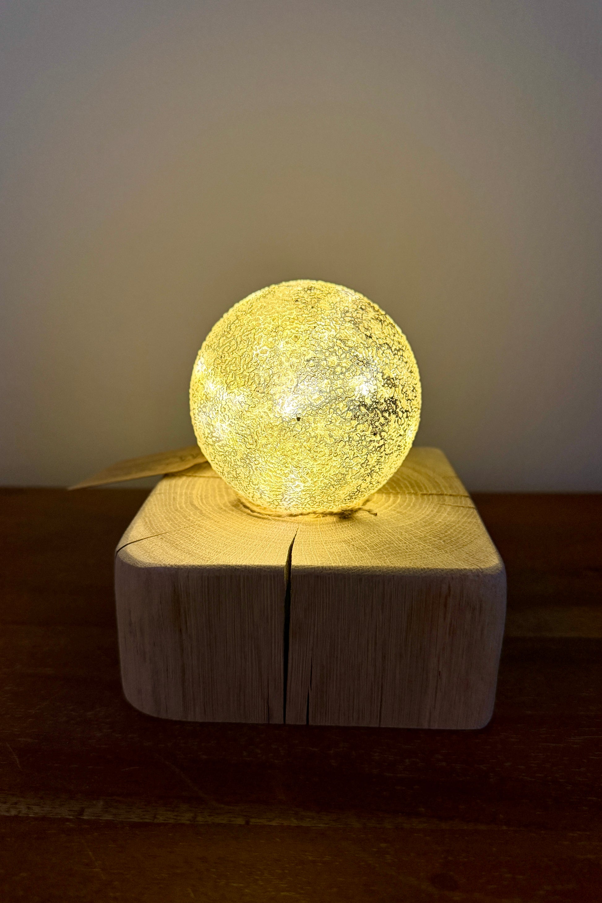 Leuchtkugel Glas auf Holzstamm geschliffen 1577